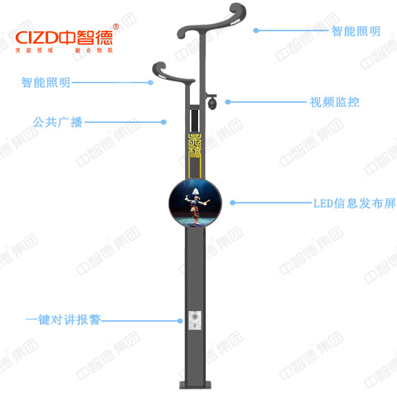 5G智慧灯杆是在一根灯杆上集成交通、通信、环保等职能部门的智能感知设备,比如充电桩、LED信息发布屏、高清摄像头、应急报警、5G基站搭载网络、停车检测、环境感知、井盖及积水监测、网络音像等。
