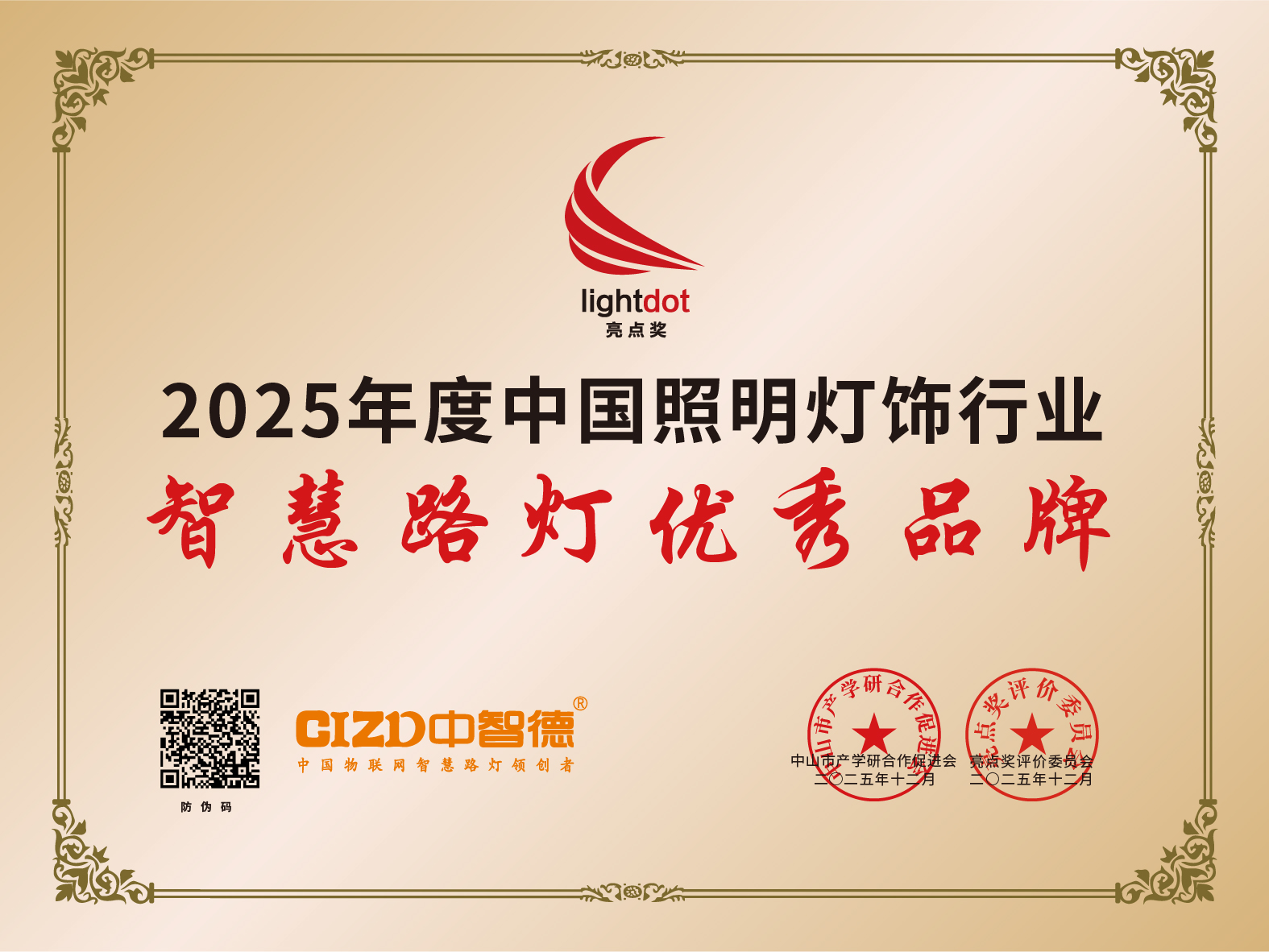 12月26日,“展品牌力量·树行业典范”亮点奖2025照明灯饰行业品牌大会上,2025年度人物、年度创新人物、年度领袖品牌以及各品类十大品牌榜单揭晓。中智德智慧物联科技集团有限公司凭借卓越的品牌影响力,连续8年强势跻身“亮点奖照明灯饰行业智慧路灯优秀品牌”之列。